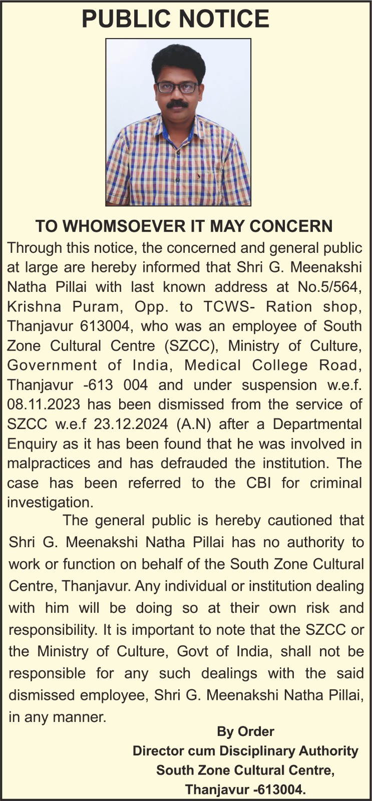 Shri. K.K.GopalakrishnanDirectorSouth Zone Cultural Centre