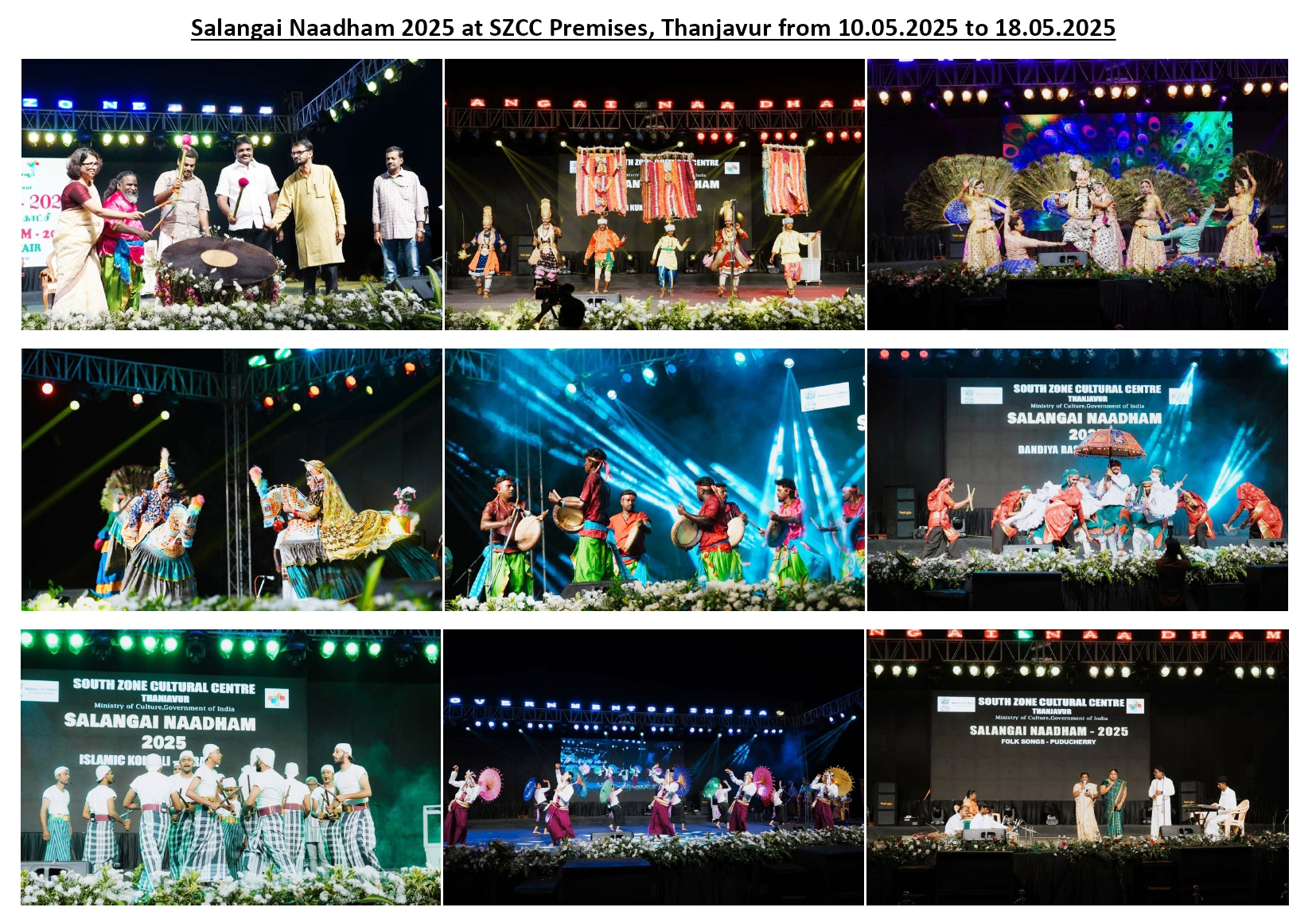 The South Zone Cultural Centre was established to bring the indigenous cultures of the zone closer to the masses, especially to the rural populace and to the under privileged, and make them understand, experience, educated and enjoy this cultural variety of our country. This will not only help the country to keep alive the cultural values and traditions but will also keep it emotionally integrated. Much of our cultural development after independence has been limited to a few who have appreciated it, the knowledgeable. It has not been permeated down to the rest of our society. Dance, Drama, Music and Art must all integrate to make a total concept of every aspect of our culture through Zonal Cultural Centres. The programmes are organized in line with this vision and with the intention to perform the centrifugal role of disseminating culture outwards.